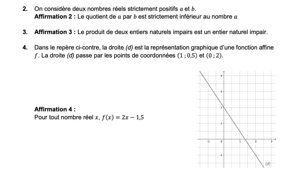 Ensuite, on a un enchaînement de vrai/faux sur des notions variées du programme.
