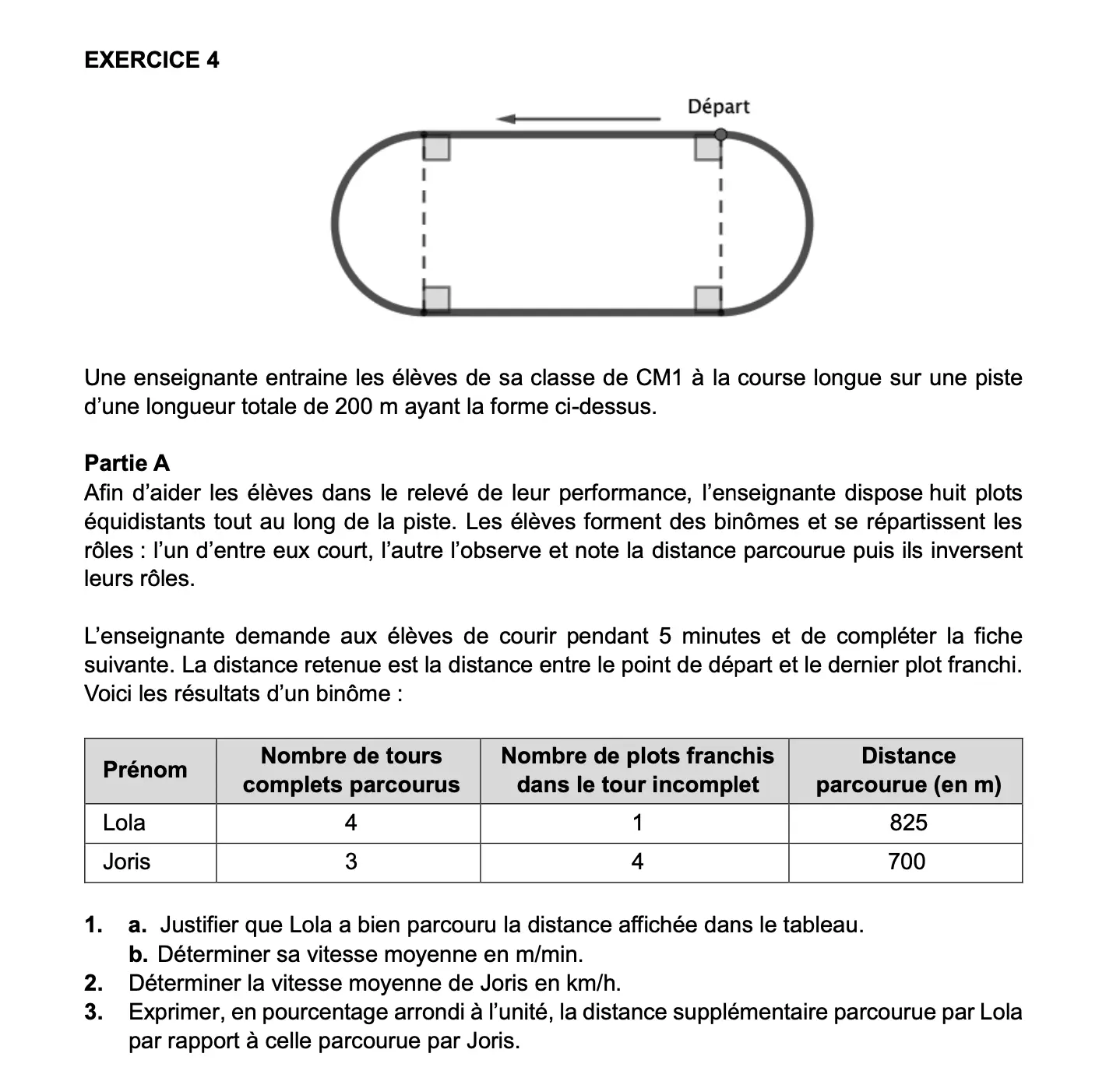 Attention à faire extrêmement attention aux unités des données de l’énoncé et des vitesses demandées dans les questions. Vous DEVEZ savoir convertir des vitesses dans différentes unités (ici des m/min aux km/h) pour pouvoir répondre à des questions de ce type, très fréquentes dans les sujets de CRPE.